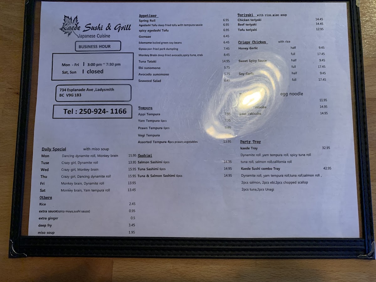 Overall, Kaede Sushi’s menu caters to a wide range of tastes, from classic sushi to inventive rolls and deep-fried dishes, making it a must-visit spot for sushi enthusiasts in Ladysmith.